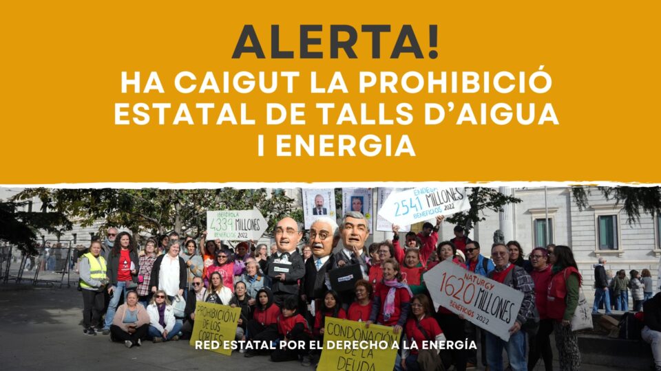 La Red estatal por el Derecho a la Energía (ReDE) denunciem el vot en contra de Junts, que protegeix els interessos dels rendistes i l’oligopoli elèctric, provocant la caiguda de la moratòria de talls de subministraments bàsics.